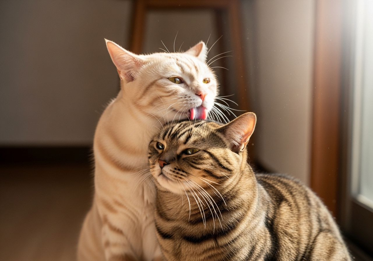 - 서열 정리 및 영역 표시: 다묘가정에서는 서열이 높은 고양이가 낮은 고양이의 머리나 목 주변을 핥아주며 자신의 우위를 표현하고 관계를 다지는 모습을 보이기도 합니다.