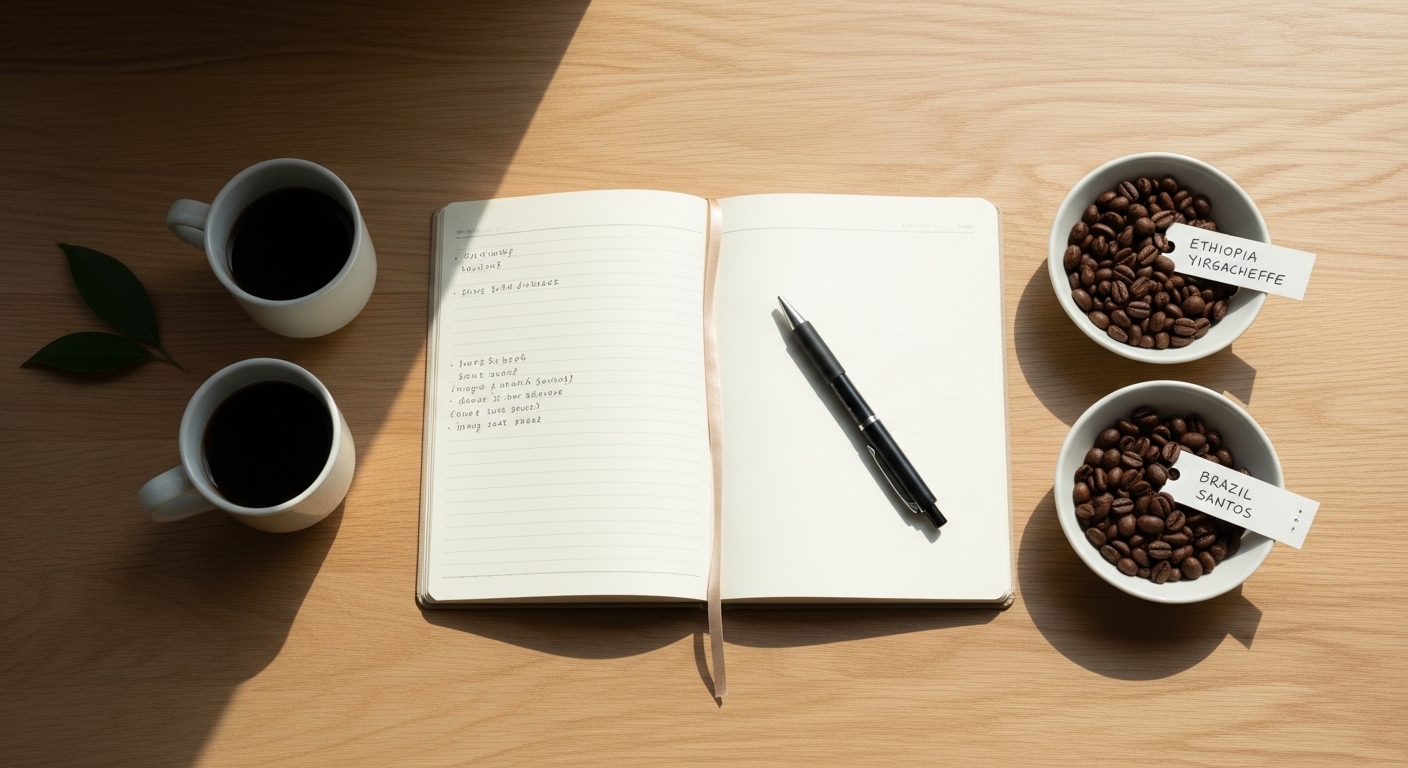 간단하게라도 좋으니 마셔본 원두의 이름과 느낀 점을 기록해보세요. '에티오피아 예가체프 - 향긋한데 내 입엔 조금 가벼움', '브라질 산토스 - 고소해서 좋은데 조금 더 특별한 향이 있었으면'. 이런 기록들이 쌓이면 다음 원두를 선택할 때 아주 중요한 나만의 취향 지도가 된답니다.