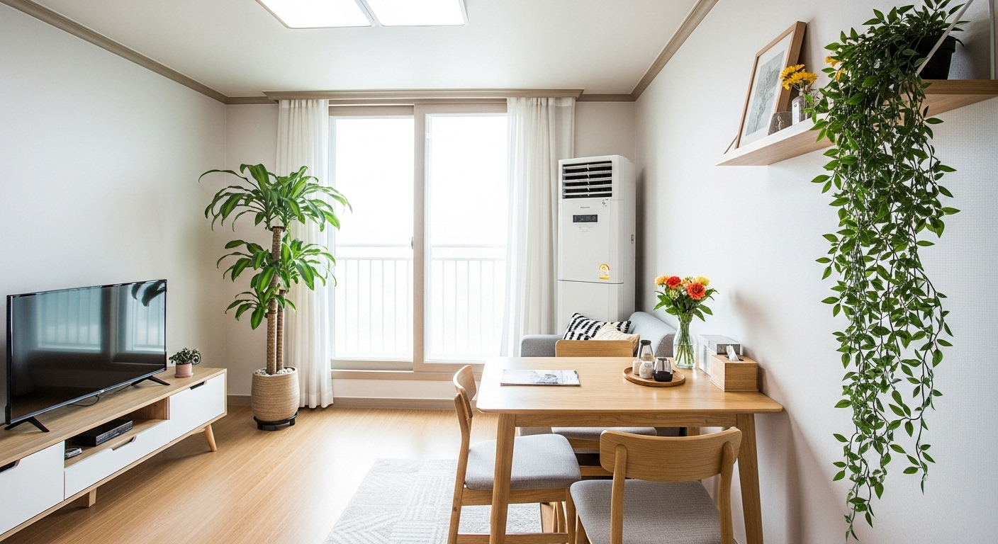 • 좁은 집에서는 시선을 위로 끄는 '키 큰 식물'을 코너에 배치하여 층고가 높아 보이는 착시 효과를 활용하세요.