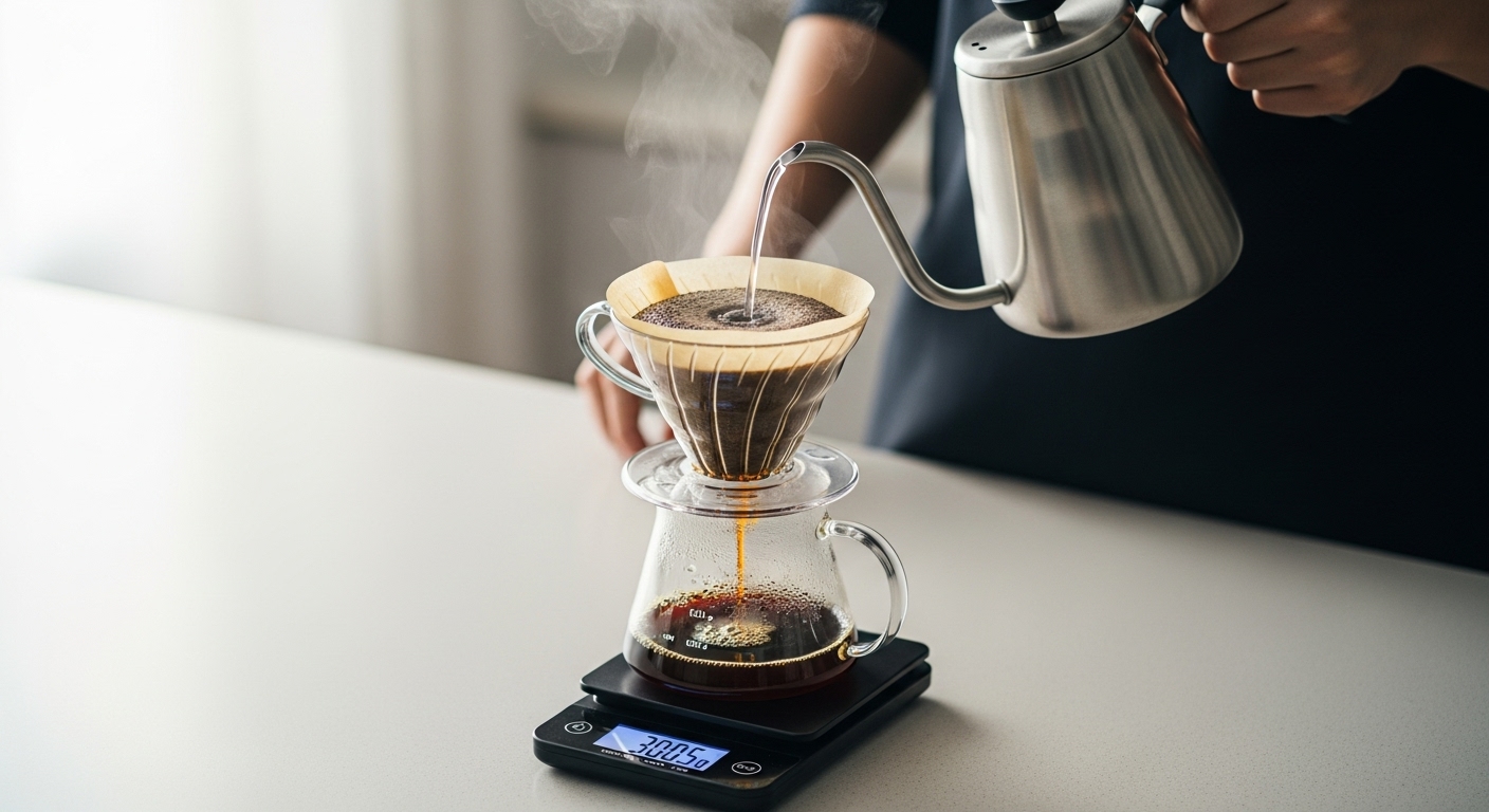 핸드드립을 위해 비싼 장비를 갖출 필요는 없습니다. 하지만 딱 한 가지, '주방용 저울'만큼은 꼭 투자하시라고 말씀드리고 싶어요. 저울 위에 드리퍼와 서버를 올리고 0점을 맞춘 뒤, 원두 양과 부어주는 물의 양을 정확히 계량하는 습관만 들여도 커피 맛의 편차 90%는 잡을 수 있습니다. 만 원짜리 저울 하나가 당신의 홈카페를 프로의 영역으로 이끌어 줄 거예요.